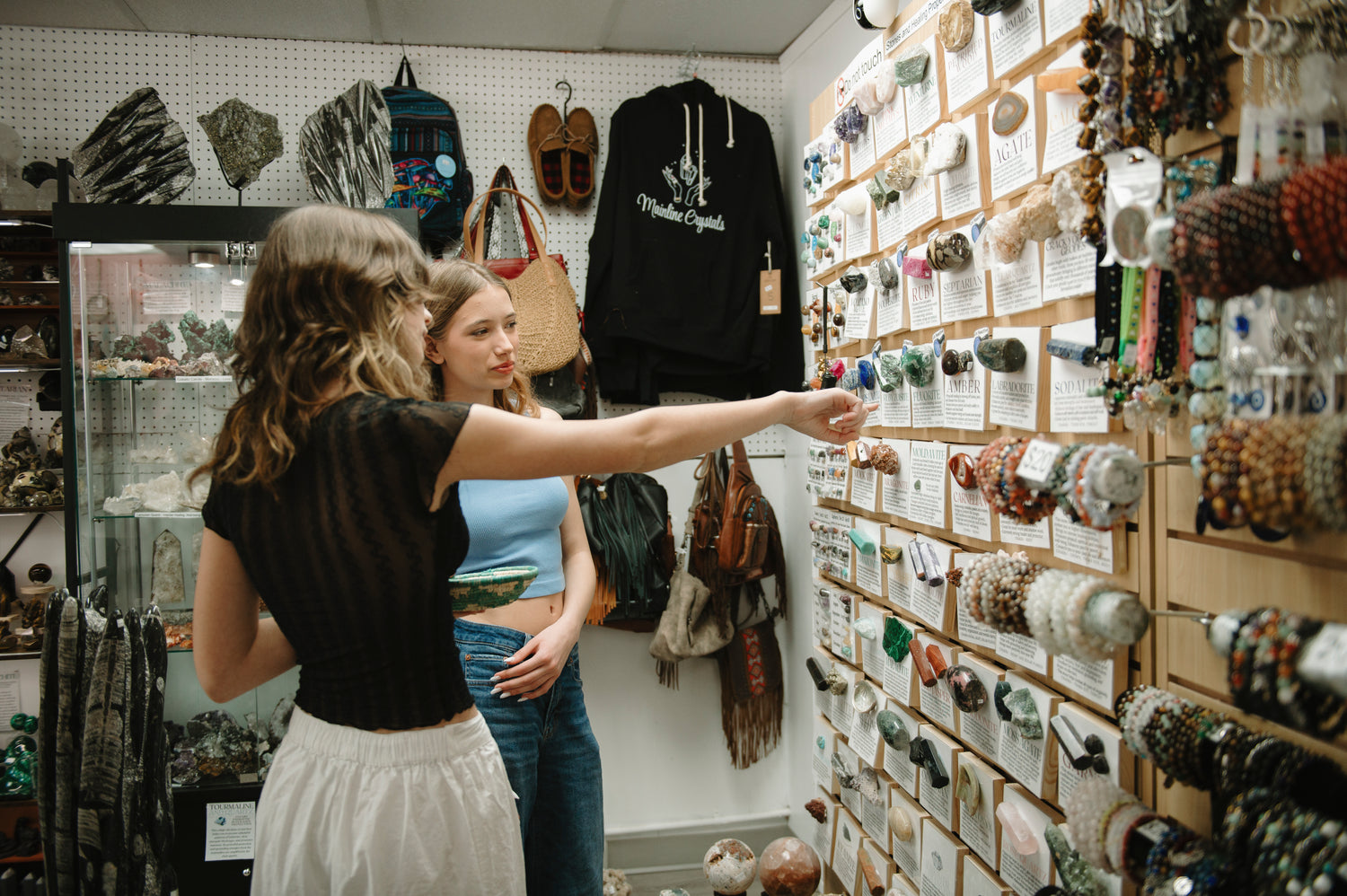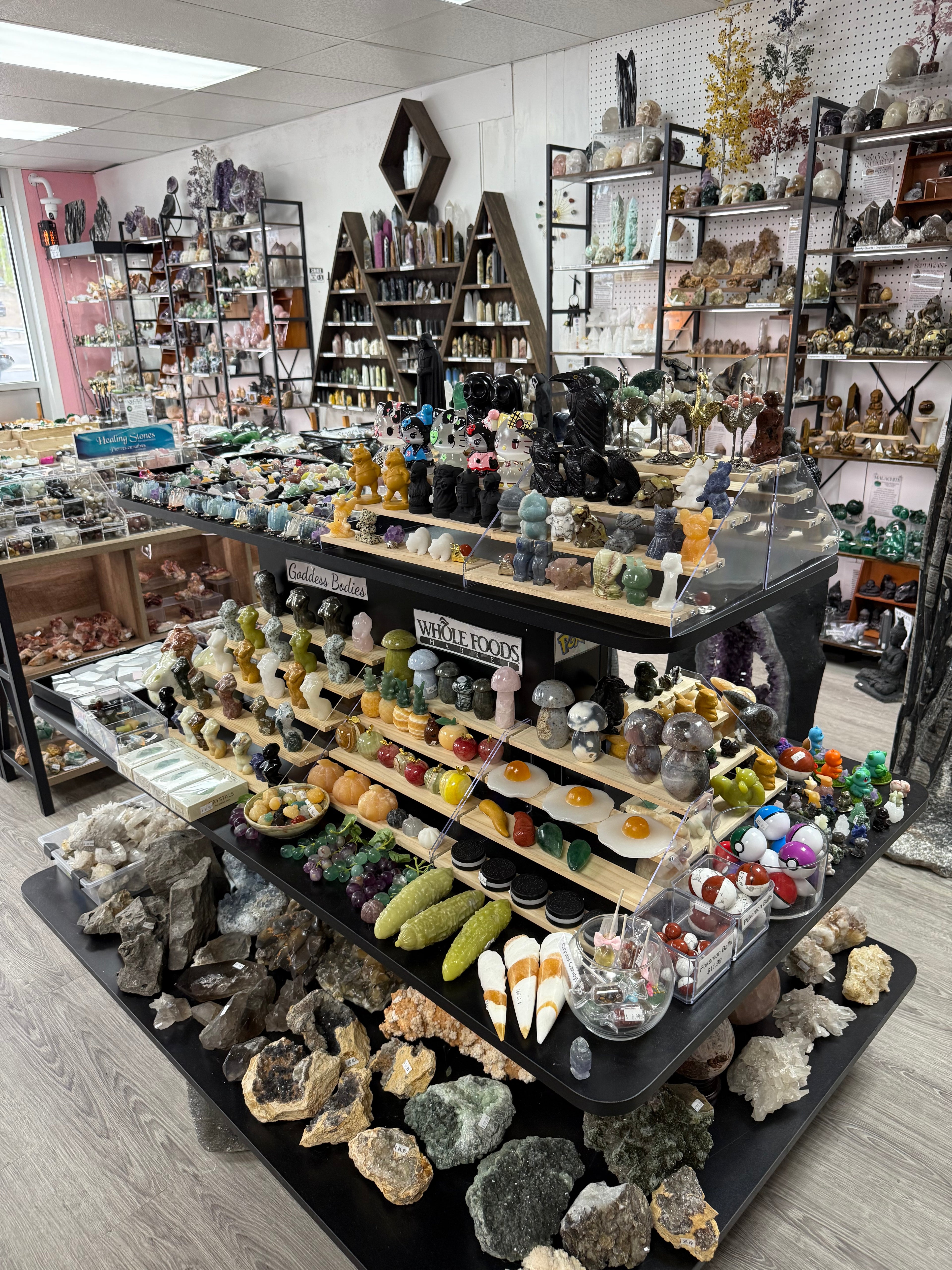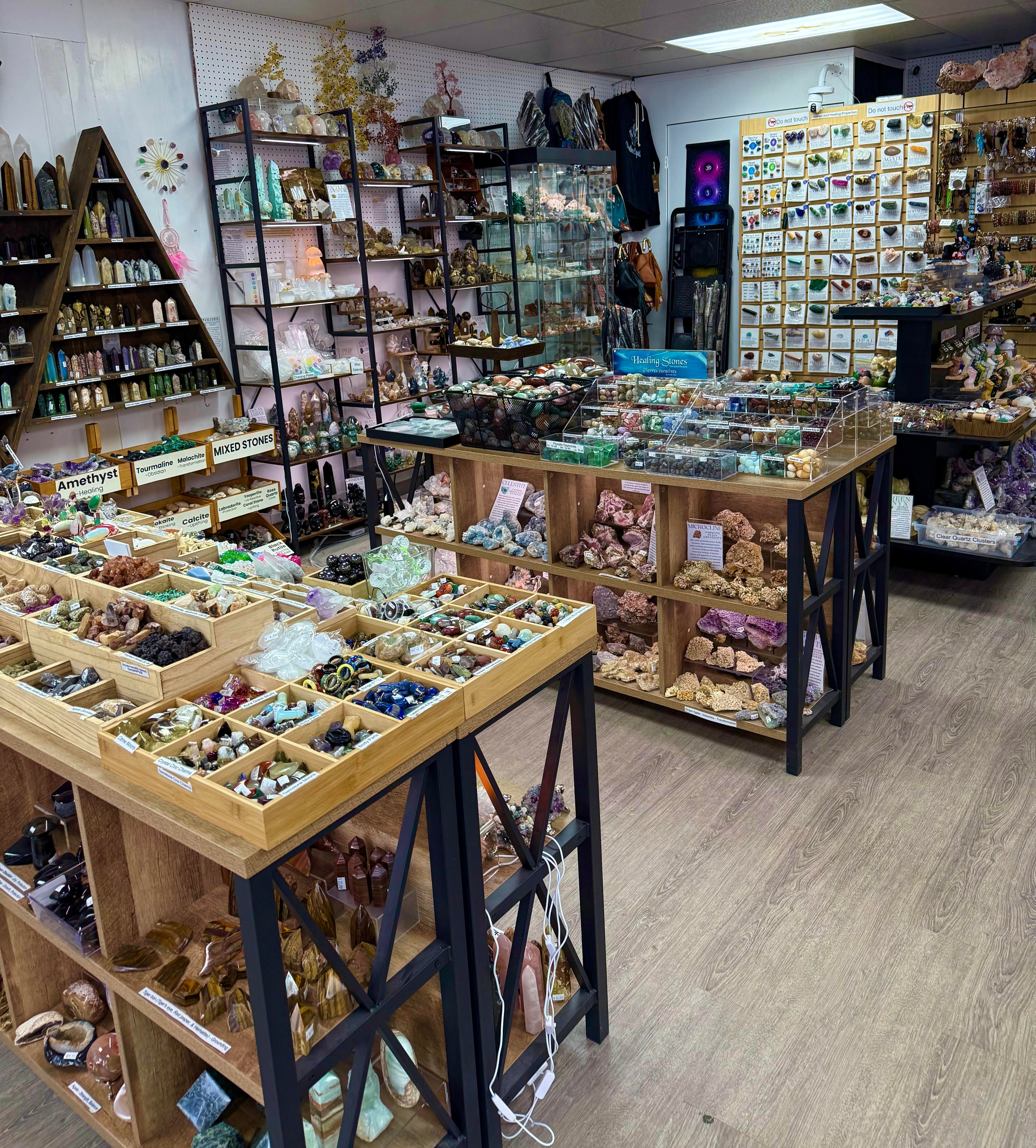 Not sure which crystal connects to your zodiac, chakra, or energy needs? We’ve got a whole wall to help you out! Right by the bracelet display, you’ll find real crystal samples paired with info cards that explain their meanings, uses, and associations. Whether you’re new to crystals or just looking for something specific, this is the perfect spot to explore, learn, and be inspired!
