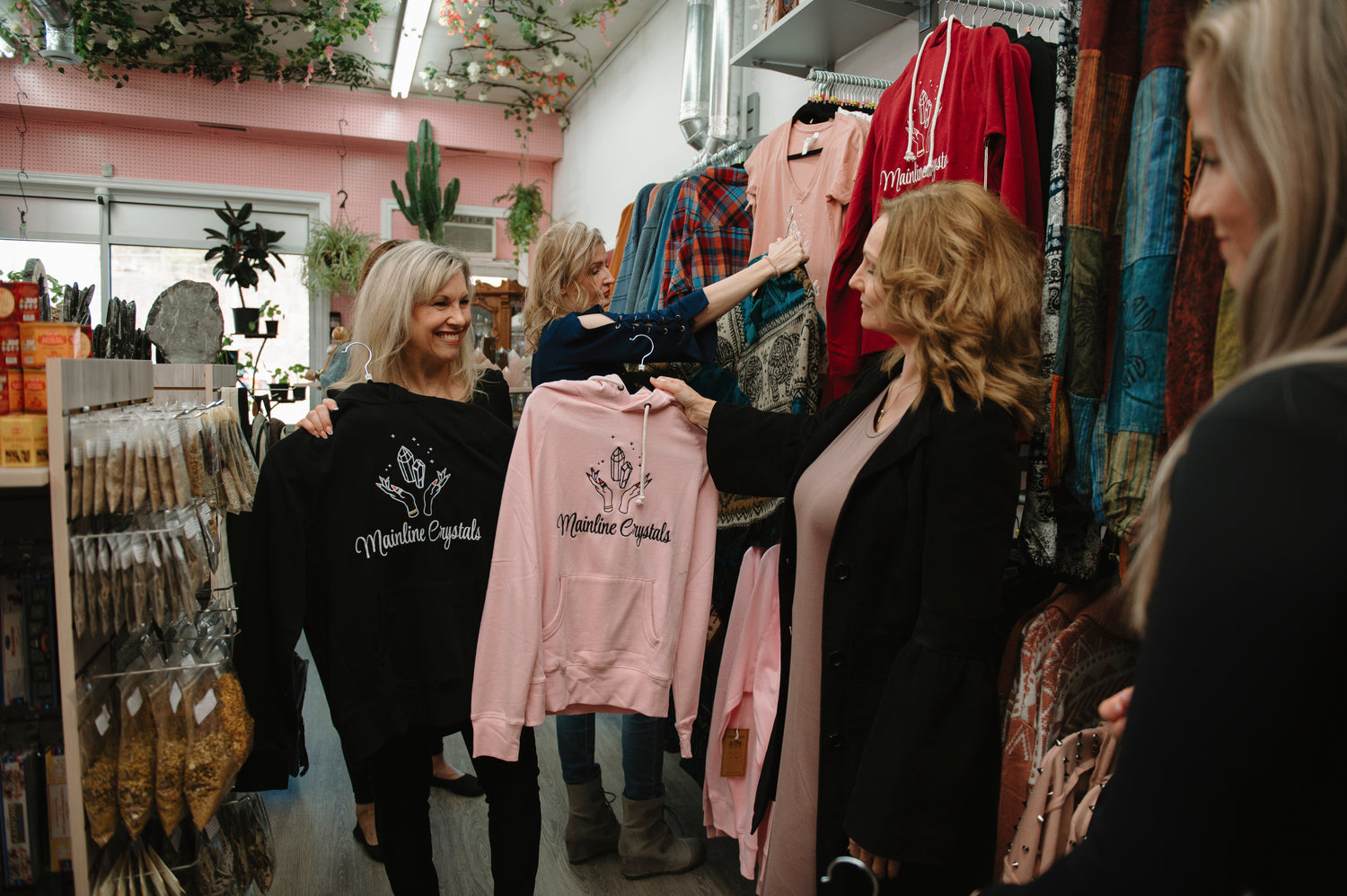 From cozy hoodies and boho layers to flowy patchwork pieces and plus-size options, our clothing wall has something for every vibe. We even carry exclusive Mainline Crystals merch!