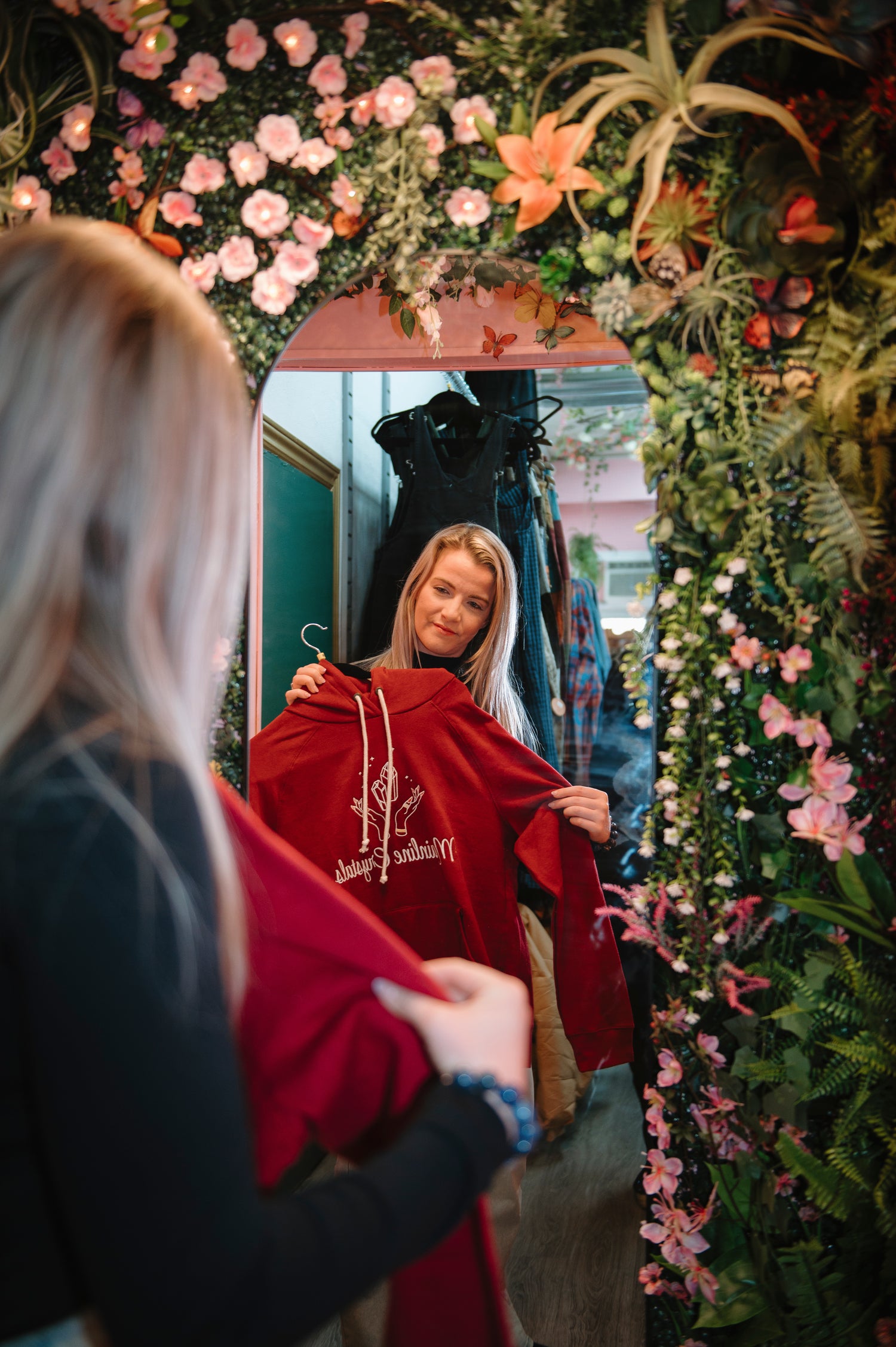Trying something on? Step into our dreamy change room, surrounded by florals and good vibes. It’s the perfect spot to see how your pieces fit, maybe snap a selfie or two while you’re at it!