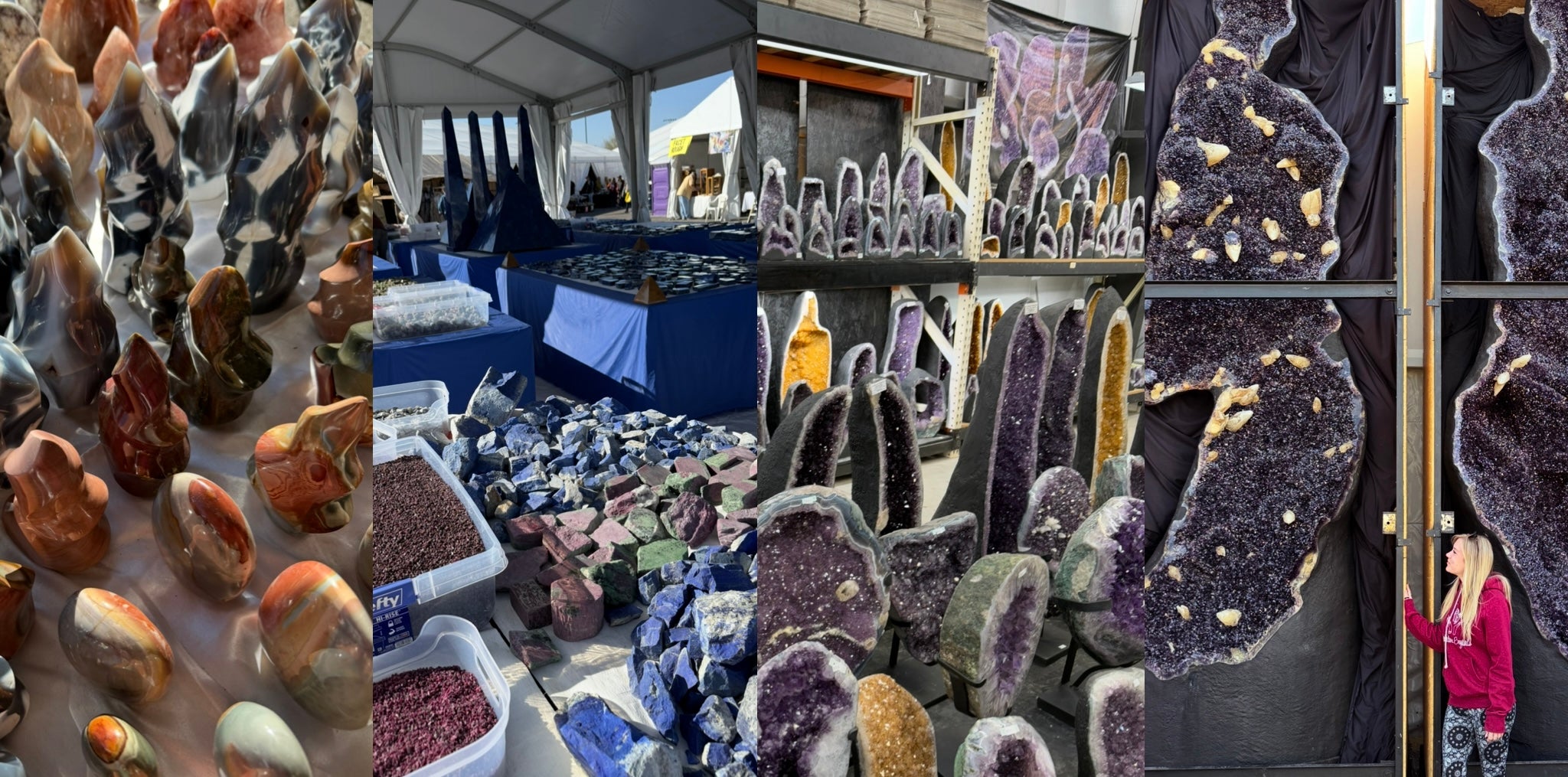 I travel to the Tucson Gem & Mineral Show every year for a full month to hand-select each and every piece, making sure what we offer is beautiful, affordable, and aligned with our intentions. This year we filled enough to send a transport back! We form great connections while there continue ordering from year round.