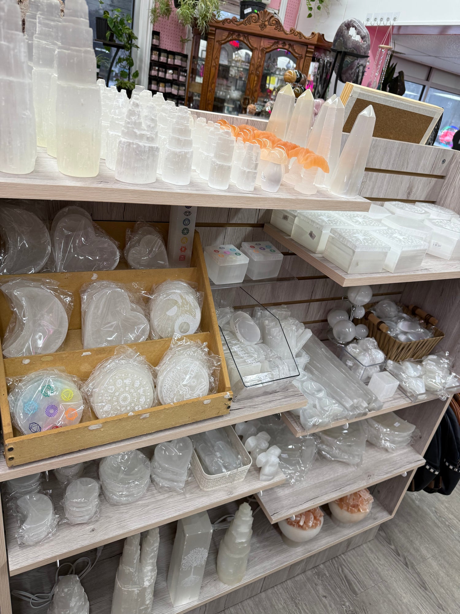 We have multiple sections dedicated to Selenite featuring bowls, plates, towers, and so much more, each one perfect for cleansing and recharging your crystals.