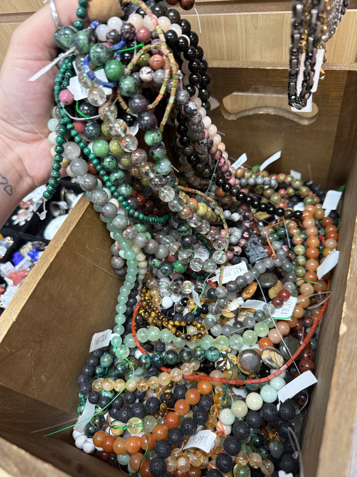 We’ve got strands on strands of gemstone beads in lots of sizes and stones! Perfect for crafting, customizing, or just collecting because they’re too pretty not to.