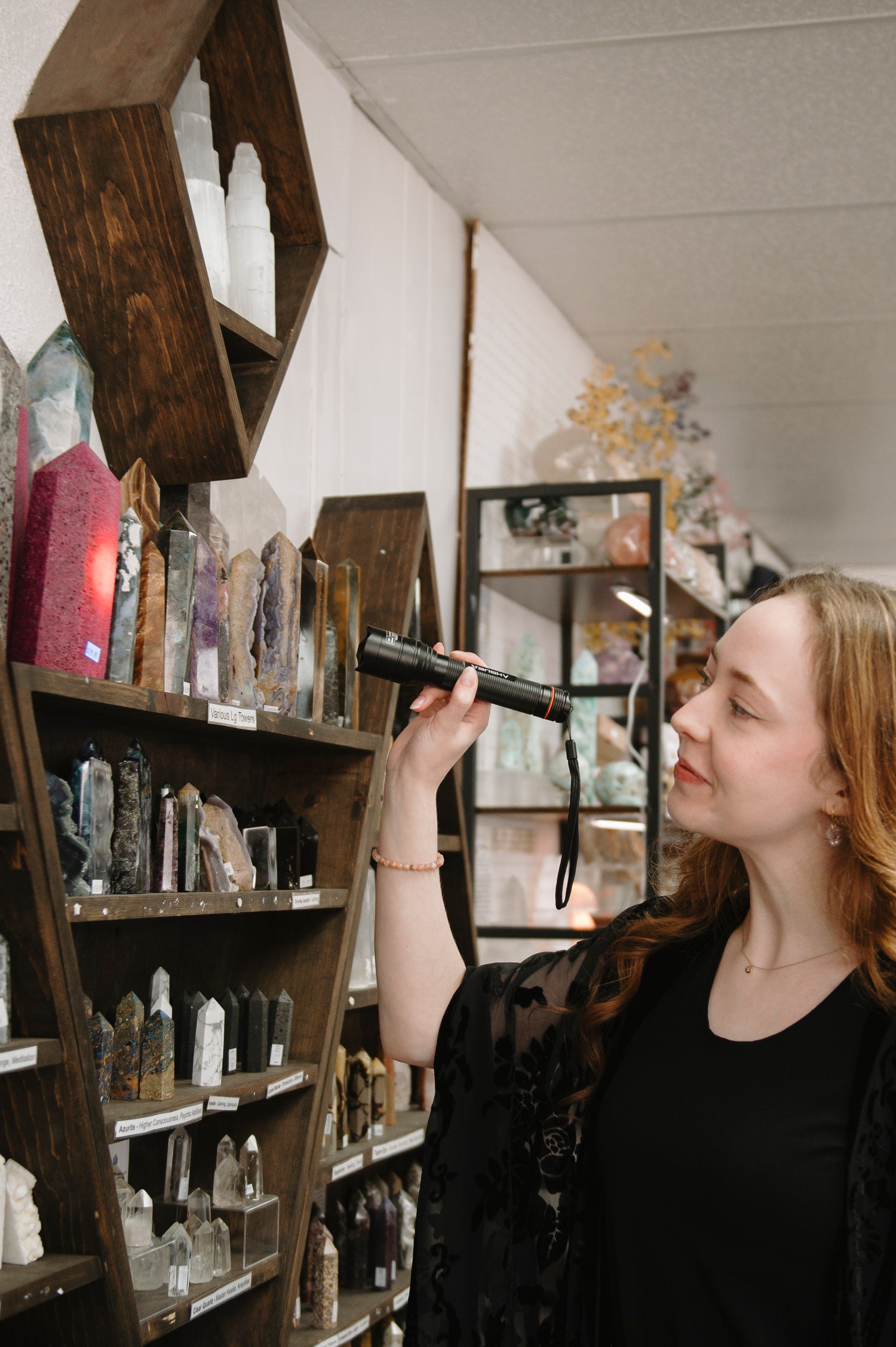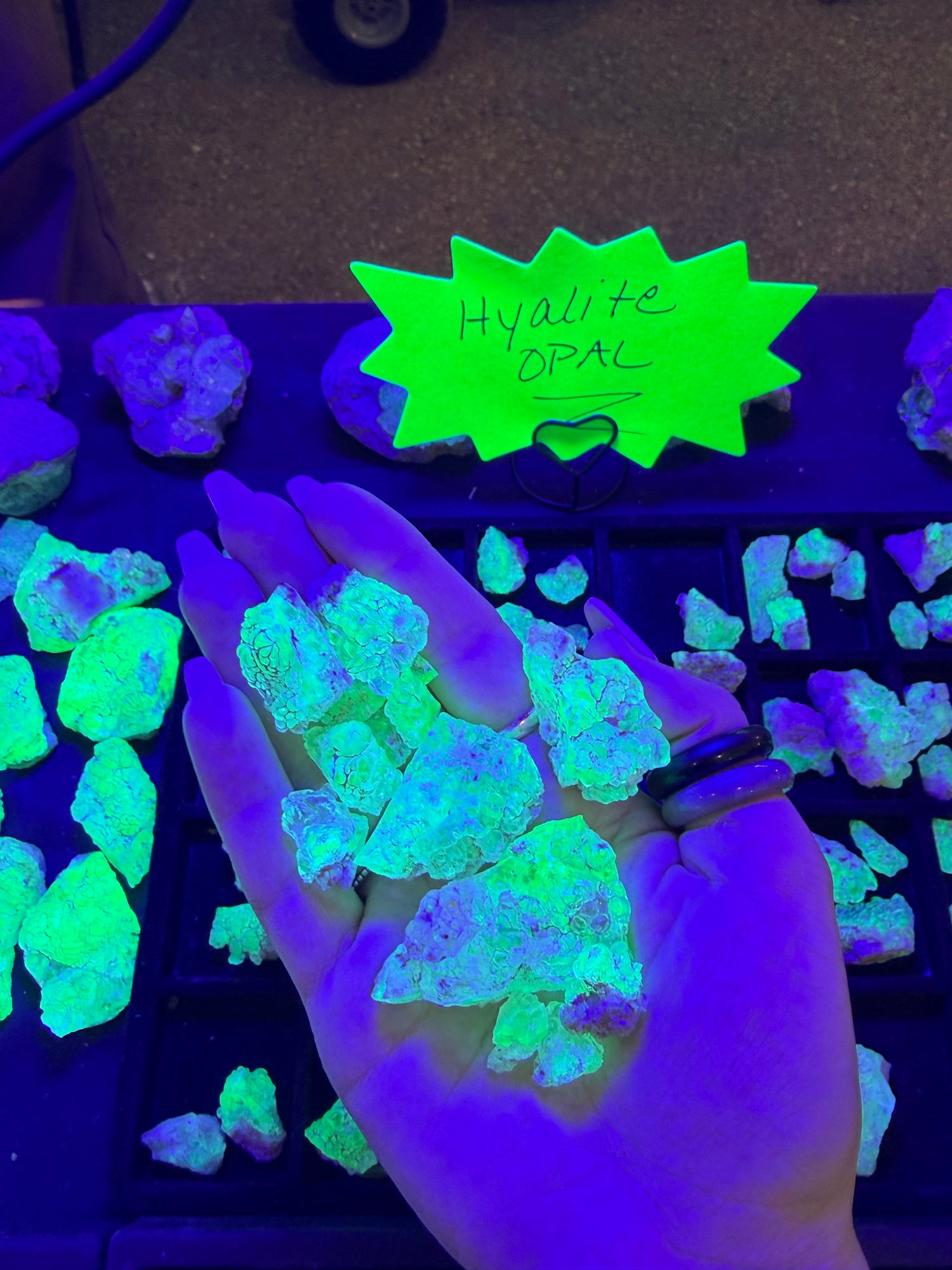 From Hyalite Opal to Yooperlite, Mangano Calcite, Fluorite, Ruby, Amber, and more, our UV section is a glow party waiting to happen. These stones light up under blacklight and look like straight-up magic. Come see the glow show in person!
