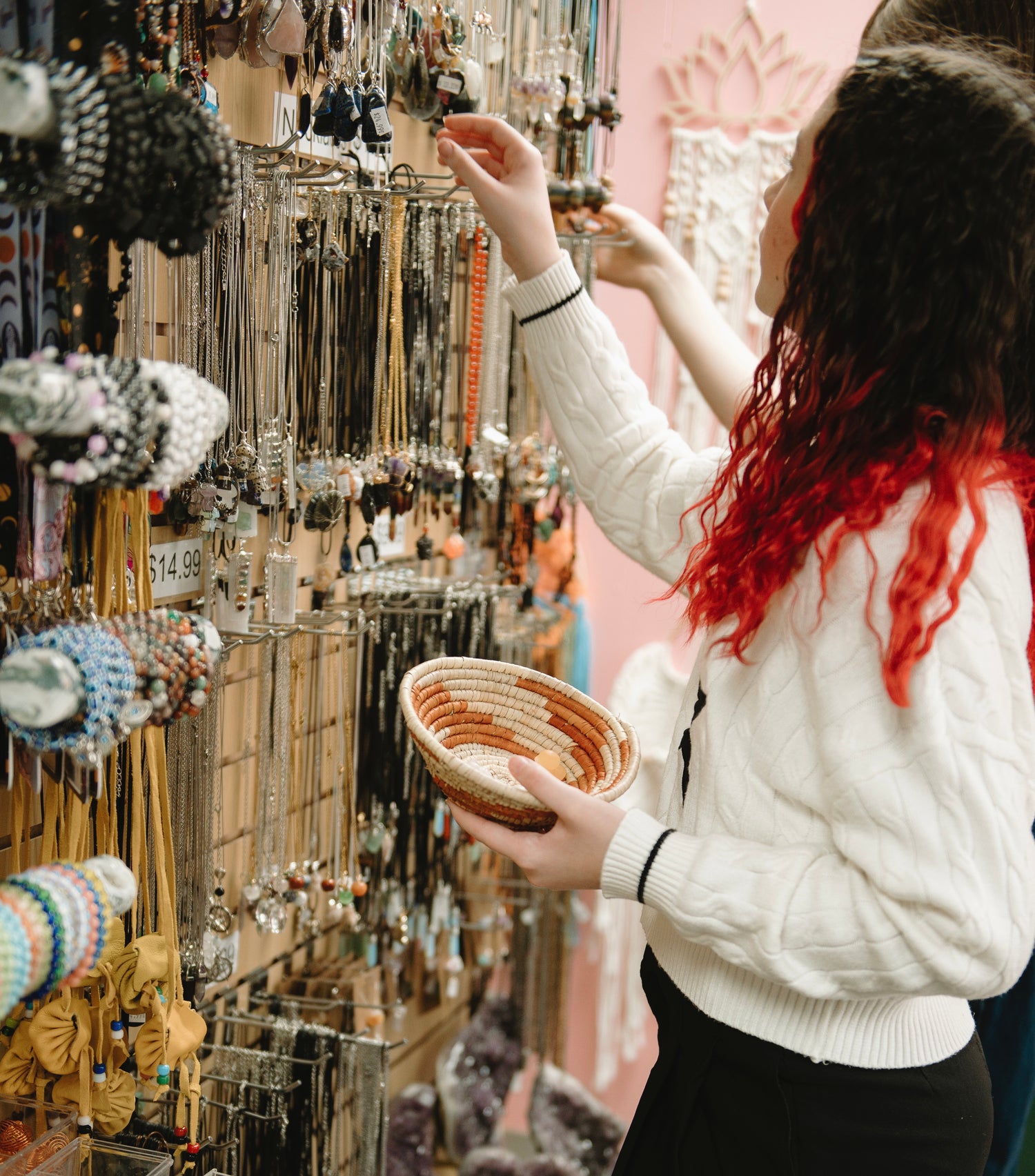 We’ve got an entire wall dedicated to crystal necklaces, with every style, stone, and intention you can think of!